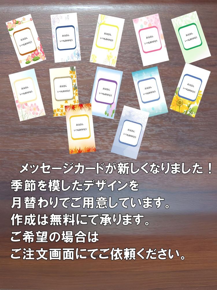 ご希望の方に「簡易のし」「メッセージカード」を無料でお付けいたします。